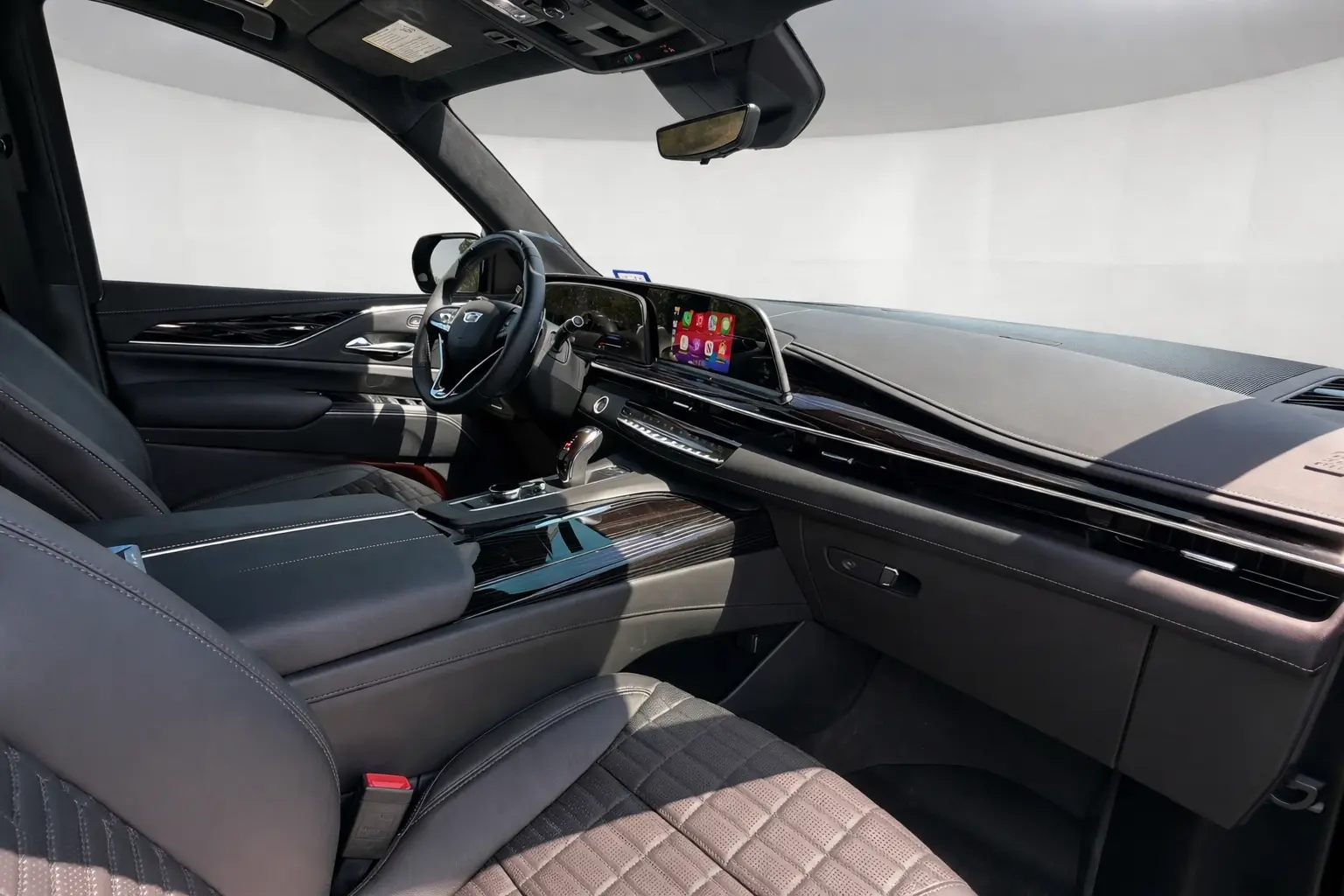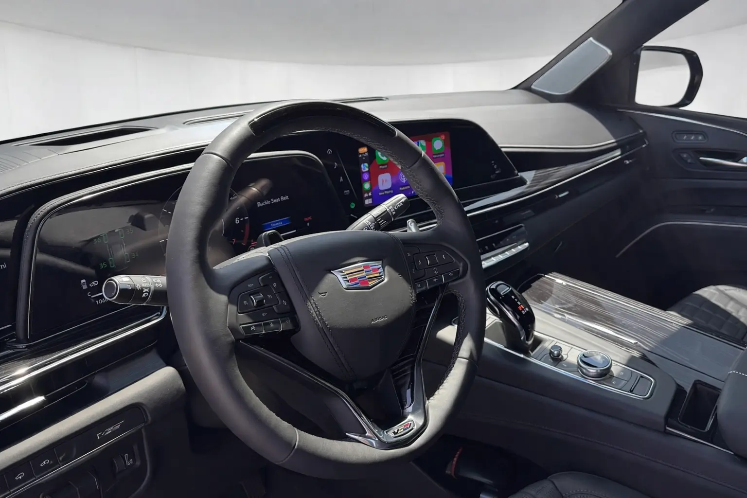 This specific example commands the road with the optional Onyx Package, which imparts a menacing, monochromatic aesthetic through gloss-black 22-inch wheels, blacked-out badging, grille trim, and window surrounds. The interior is a sanctuary of handcrafted luxury, featuring semi-aniline leather, zebra wood accents, and the massive curved OLED display spanning the dashboard. Furthermore, this Escalade-V is equipped with compatibility for Super Cruise, Cadillac’s premier hands-free driver assistance technology for compatible highways, blending ultimate performance with cutting-edge convenience.